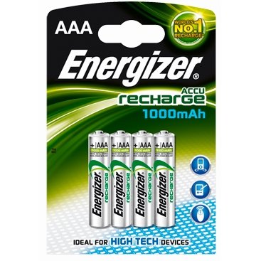 Energizer AAA NiMH Rechargeable Batteries 1,000 mAh (4-Pack)